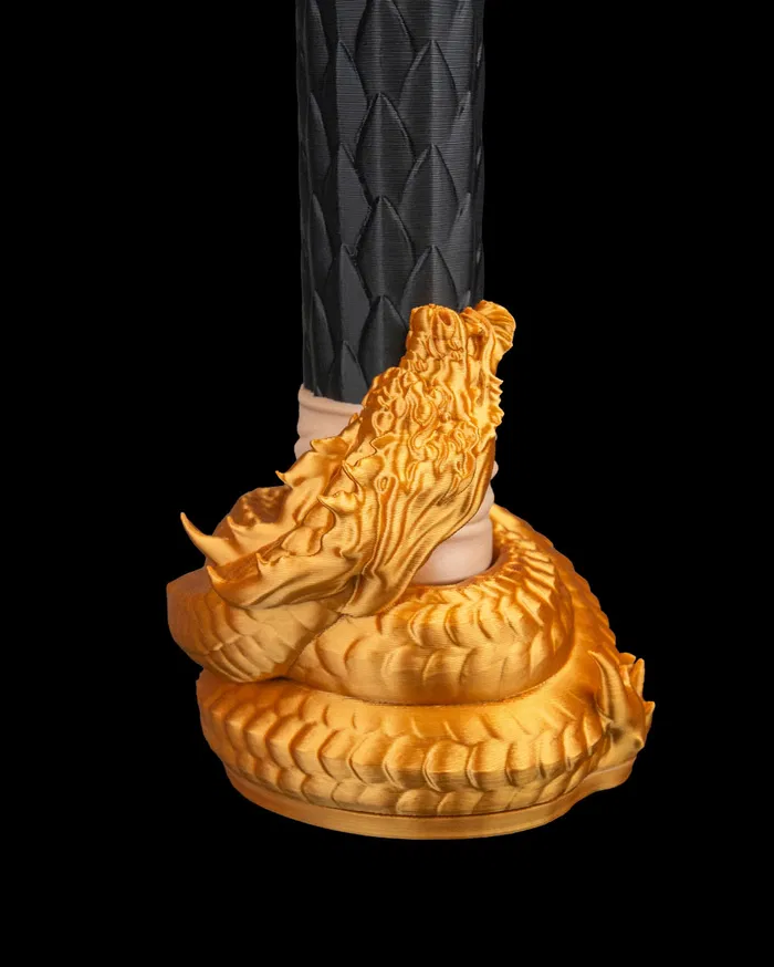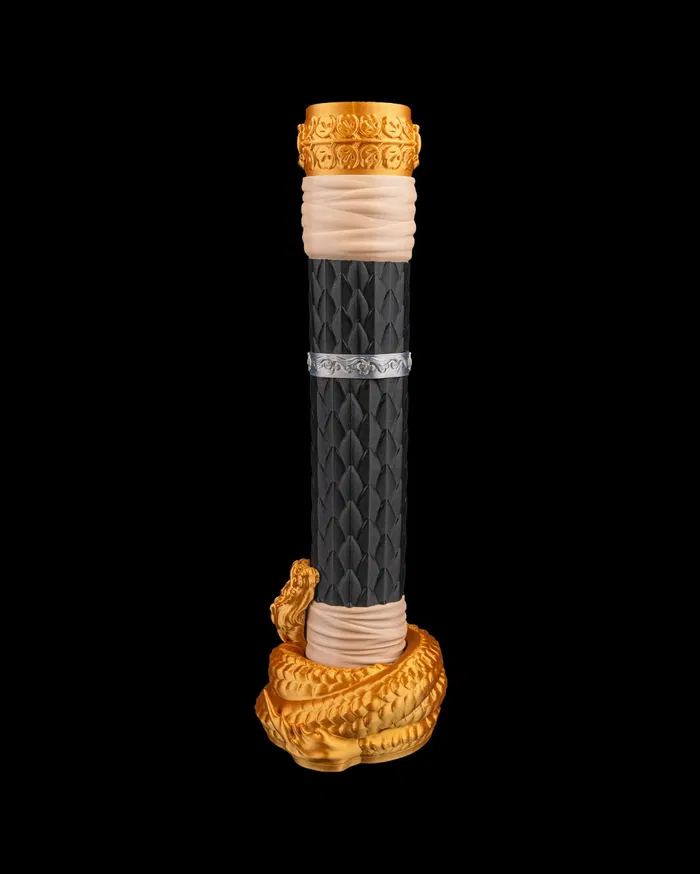 Kılıç, sanki uyuyan bir ejderhanın bir anlık hamlesiyle can bulacakmış gibi görünen dinamik yapıya sahiptir. Vitrinlerde, cosplay etkinliklerinde ve temalı çekimlerde benzersiz bir parça olarak öne çıkar.